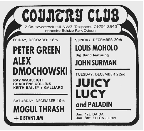 I was right. Peter Green disappeared after that night. I read that he had joined the Mac on tour in America to save gigs whence Jeremy Spencer had purportedly had his head turned by a religious sect.